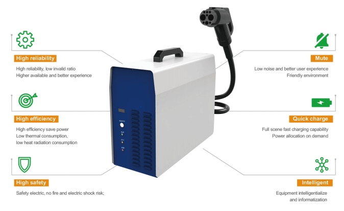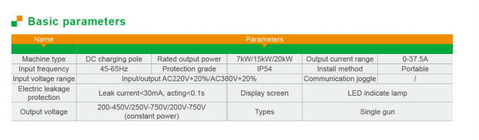 Poste de carga de CC configurado con vehículos adecuados para estaciones de carga especiales de la ciudad (autobús público, taxi, vehículo financiado por el estado, vehículo de saneamiento ambiental, vehículo logístico), estaciones de carga públicas de la ciudad (vehículos privados, autobuses programados, autobuses de viaje)