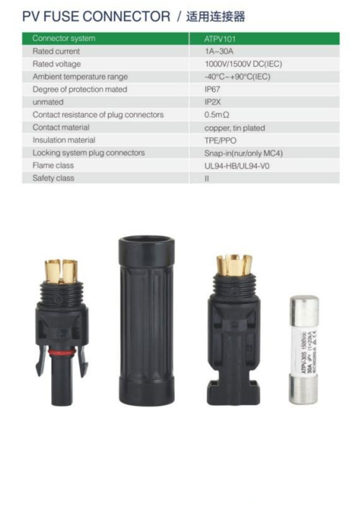 Esta serie de fusibles es adecuada para líneas con tensión nominal de CC de hasta 1500 V y corriente nominal de hasta 125 A. Se conectan en serie y en paralelo con paneles fotovoltaicos y baterías para proporcionar protección contra cortocircuitos al sistema de carga y convertidor. Asimismo, para plantas fotovoltaicas, el inversor Confluence ofrece protección contra cortocircuitos; y para sistemas de generación de energía fotovoltaica, ofrece protección de ruptura rápida contra sobretensiones y sobrecorrientes por cortocircuito, con una capacidad de corte nominal de hasta 50 kA. El producto cumple con los requisitos de las normas de la Comisión Electrotécnica Internacional (CEI) 1EC60269-6 y UL248-19.
