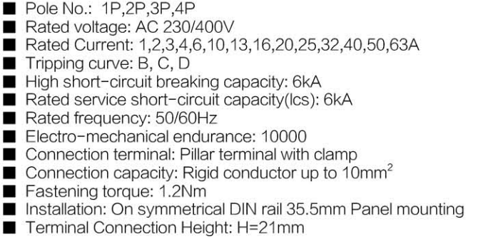 | Categorías | Disyuntor económico de serie regular de 4,5 kA y 6 kA |