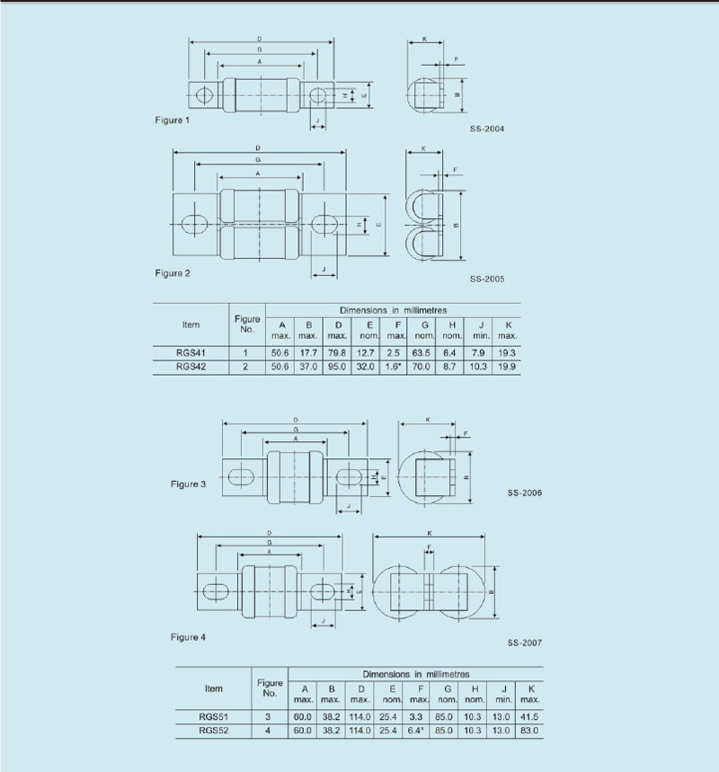 | Especificaciones estándar | IEC60269-4-1 BS88-4 |
