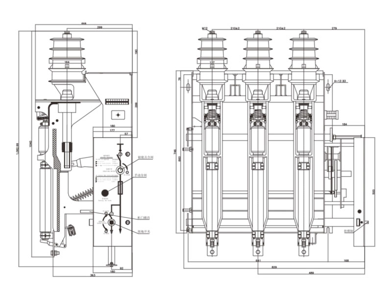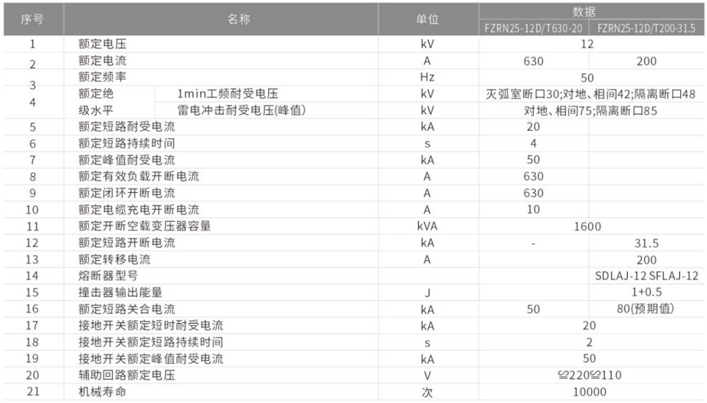 El interruptor de carga de vacío de alta tensión para interiores FZRN25-12/FZ(R)N25-12D y la combinación de interruptor de carga de vacío de alta tensión para interiores FZRN25-12D/T200-31.5, que controla sistemas de distribución de energía trifásica CA 50 Hz-12 kV, son dispositivos de protección. Este producto no contiene aceite, es atóxico, no inflamable ni explosivo, y se utiliza ampliamente en empresas industriales y mineras, estaciones de distribución de energía en edificios urbanos y otros lugares. Este último ofrece mayor fiabilidad que los interruptores automáticos para proteger equipos eléctricos como transformadores, y es especialmente adecuado para redes en anillo, unidades de alimentación auxiliar duales y subestaciones tipo caja.