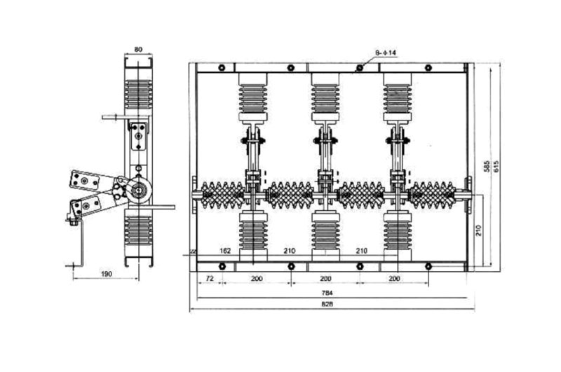 El seccionador GN□-12 presenta una estructura innovadora y es un nuevo seccionador desarrollado independientemente por la empresa. Los contactos móviles y estáticos están instalados en dos aisladores horizontales. El contacto móvil gira accionado directamente por el husillo de accionamiento para abrir, cerrar y conectar a tierra. Ocupa poco espacio. La barra colectora es fácil de conectar y su rotura es evidente. Es adecuado para armarios de alta tensión de montaje lateral con altura y espacio de instalación compactos. Puede accionarse mediante el mecanismo tipo BET a través del otro brazo sin mecanismo, o puede accionarse directamente mediante su propio mecanismo de operación, que se activa en la posición de apertura. Instale contactos de puesta a tierra para lograr la puesta a tierra de protección.