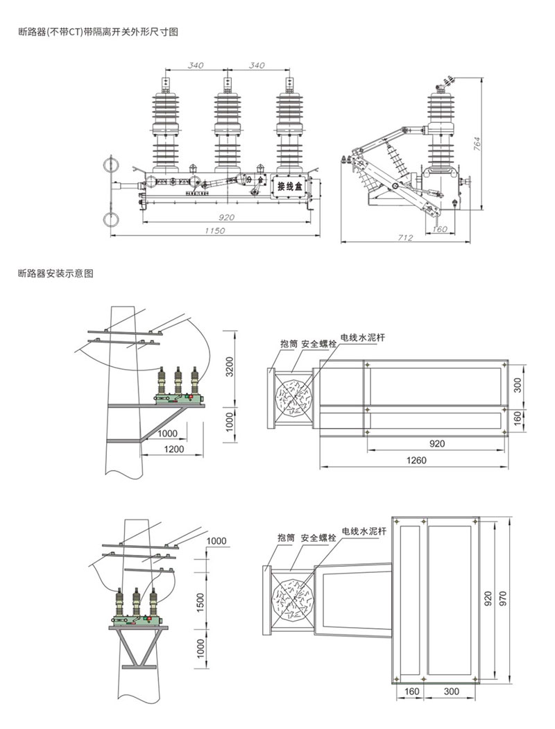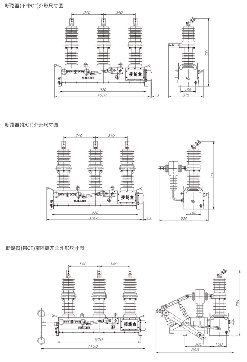 ◇Se puede sacar un interruptor de aislamiento de enlace trifásico, con un dispositivo de enclavamiento antierrores; se puede conectar con el aislador del pilar del pararrayos, lo que es conveniente para el mantenimiento.