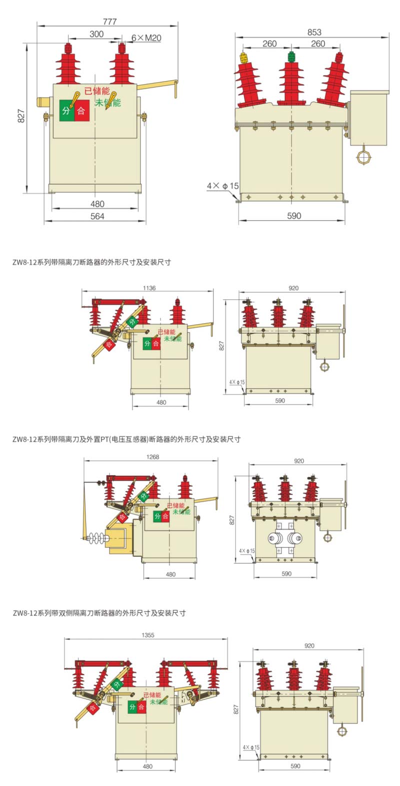Tablero de distribución de alta tensión trifásico CA 50 Hz para exteriores. Consta de un circuito de operación, un circuito conductor, un sistema de aislamiento, un sello y una carcasa, y su estructura general es de tipo caja común trifásica. Se utiliza en sistemas eléctricos rurales y urbanos de 10 kV, como controlador de corriente de carga dividida y combinada, corriente de sobrecarga, corriente de cortocircuito y otros usos similares.