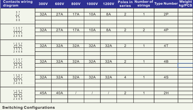 Tensión nominal de funcionamiento (Ue) | 300 V, 600 V, 800 V, 1000 V, 1200 V |