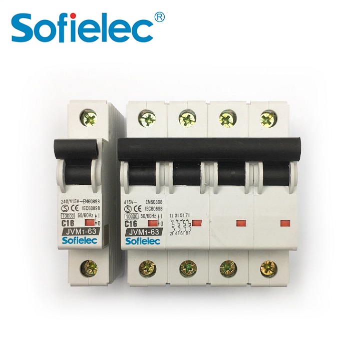Características del disyuntor MCB JVM1-63 de 4 polos y 63 amperios