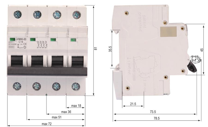 | Categorías | Disyuntor económico de serie regular de 4,5 kA y 6 kA |