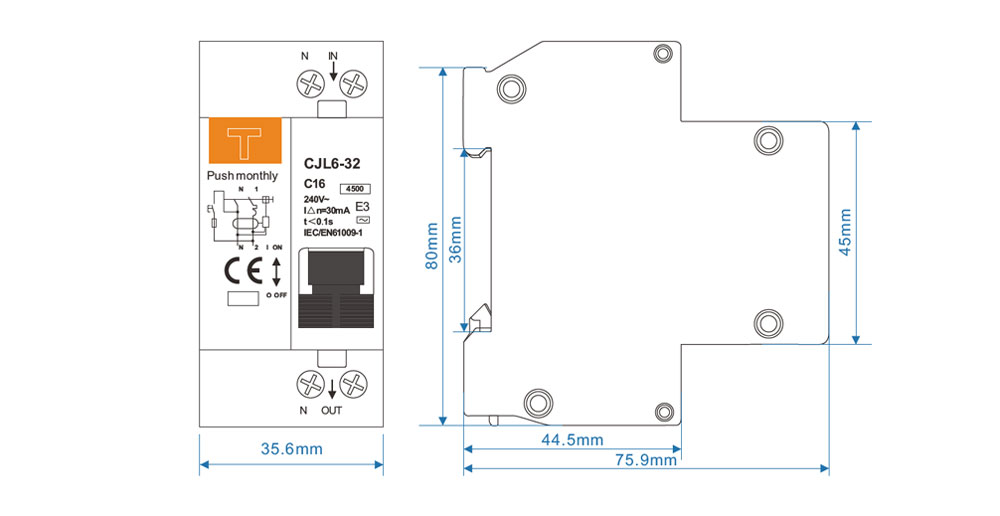 Datos técnicos del interruptor diferencial con protección contra sobrecorriente CJL6-32