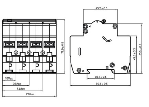 ■Corriente nominal (A): 1P+N:6, 10, 16, 20, 25, 32, 40,50,63A;