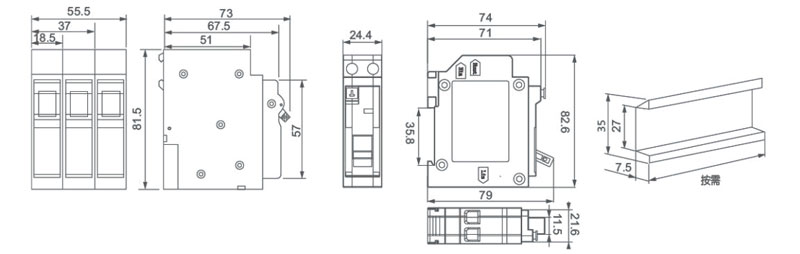 Funciona según el principio de disparo térmico y magnético en el lado de la línea de producción, y la protección contra sobrecarga y cortocircuito cumple con los requisitos de IEC60898-1;