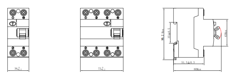 Dimensiones generales y de instalación de interruptores diferenciales 2P/4P