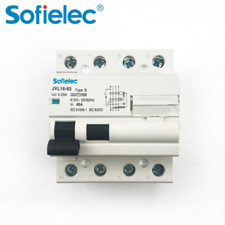 Características del RCD tipo B para aplicaciones EV y PV 4P 63A