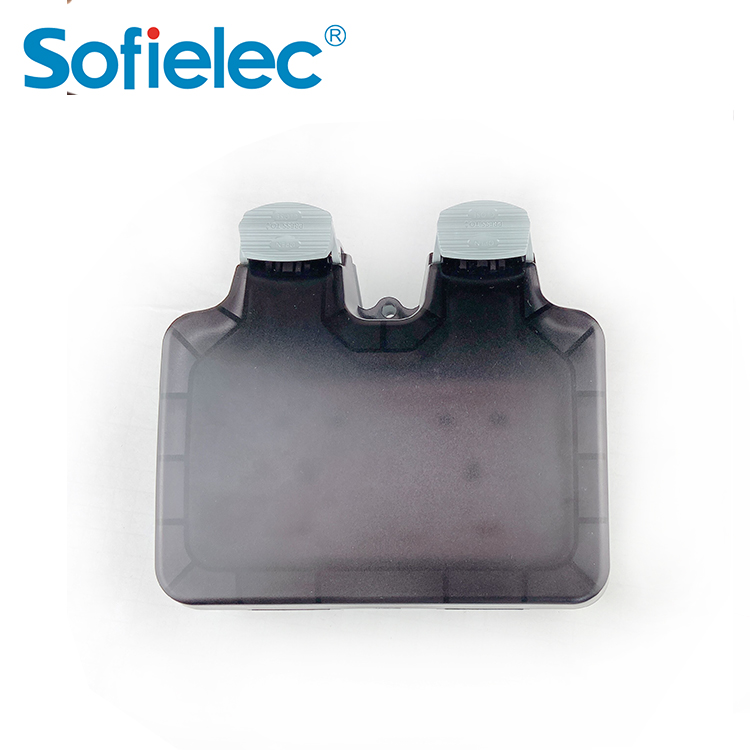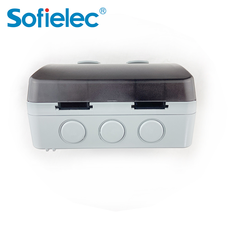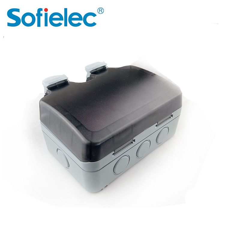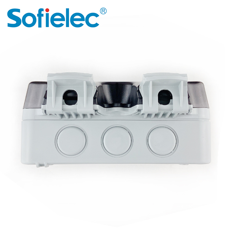 Toma de corriente resistente a la intemperie de 13 A con doble interruptor en el interior de la pantalla