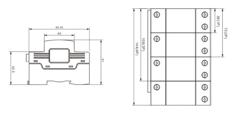 Protector contra sobretensiones IP20 Dimensiones generales