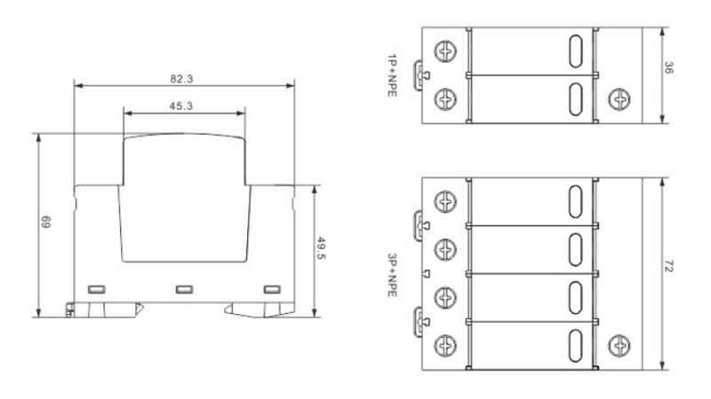 Protector contra sobretensiones XZ-NPE de 275 V, dispositivo de protección contra sobretensiones de 20 KA/40 KA, dimensiones generales