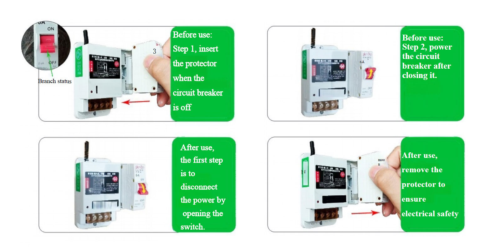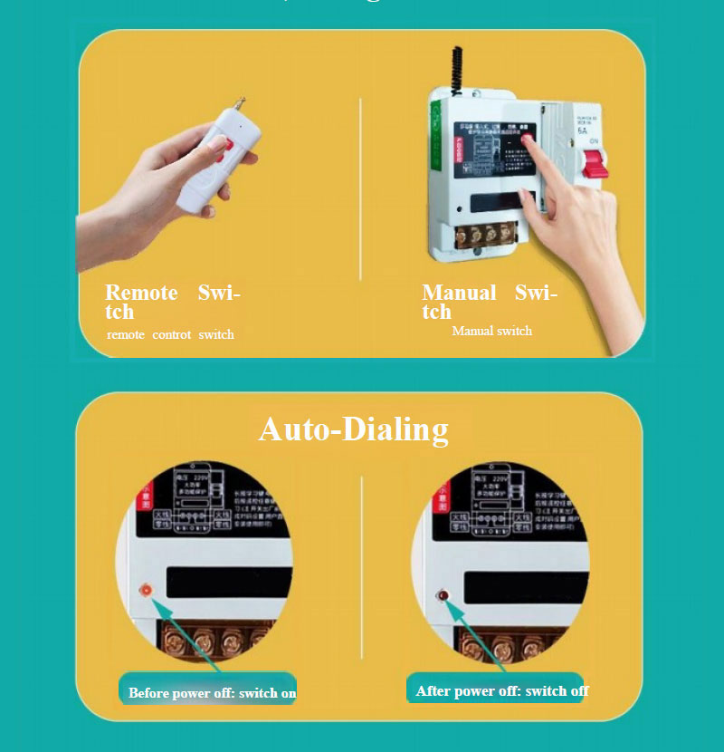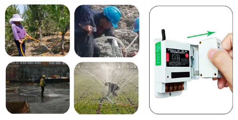 Este interruptor inalámbrico remoto cuenta con múltiples funciones de protección, como protección contra sobrecargas, prevención de cortocircuitos y protección contra rayos. Cuando los dispositivos eléctricos experimentan sobrecargas, cortocircuitos o descargas de rayos, el producto desconecta automáticamente la alimentación para garantizar la seguridad eléctrica. La unidad de protección contra sobrecargas adopta un diseño "plug and play", que permite a los usuarios seleccionar y reemplazar unidades según los requisitos de capacidad de carga. Esto previene eficazmente riesgos de seguridad eléctrica causados por cableado antiguo, mal funcionamiento del equipo o fallas en el lado de la carga. (Nota: Para unidades con clavijas sueltas debido a la inserción/extracción frecuente, ajuste manualmente las dimensiones de las clavijas para garantizar una instalación segura). Cuando el equipo no esté en uso, retire rápidamente la unidad de protección contra sobrecargas para evitar la operación accidental por parte de niños o personal no autorizado, lo que podría causar lesiones o daños al equipo. Este producto es ampliamente aplicable en agricultura, ganadería, aplicaciones industriales, construcción, bombeo de agua doméstico, paisajismo, riego de jardines, regiones áridas y sistemas nacionales de bombas de eje vertical para tierras secas.