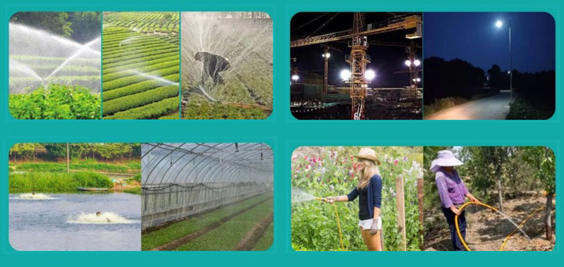 | Rango aplicado | Bombeo de agua, oxigenación de estanques de peces, riego y bebederos, iluminación de grúas torre, acuicultura, etc. | |||