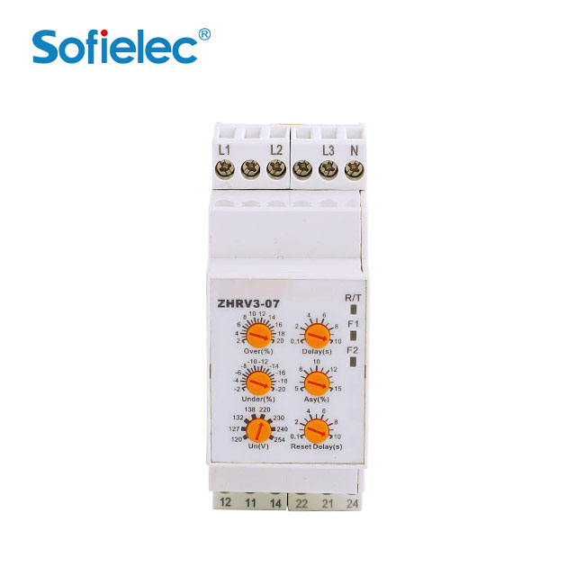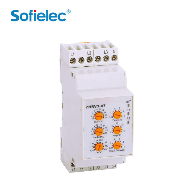 Microprocesadores integrados, medición de voltaje RMS verdadero, precisión de medición de voltaje del 5 %. Frecuencia de medición: 45 Hz a 65 Hz. Ajuste mediante botones. Pantalla LCD con información de voltaje y fallas. Protección activable o desactivable. Comprueba el valor de voltaje de fase mediante un botón. Protección contra falla de fase N. Montaje en riel DIN.
