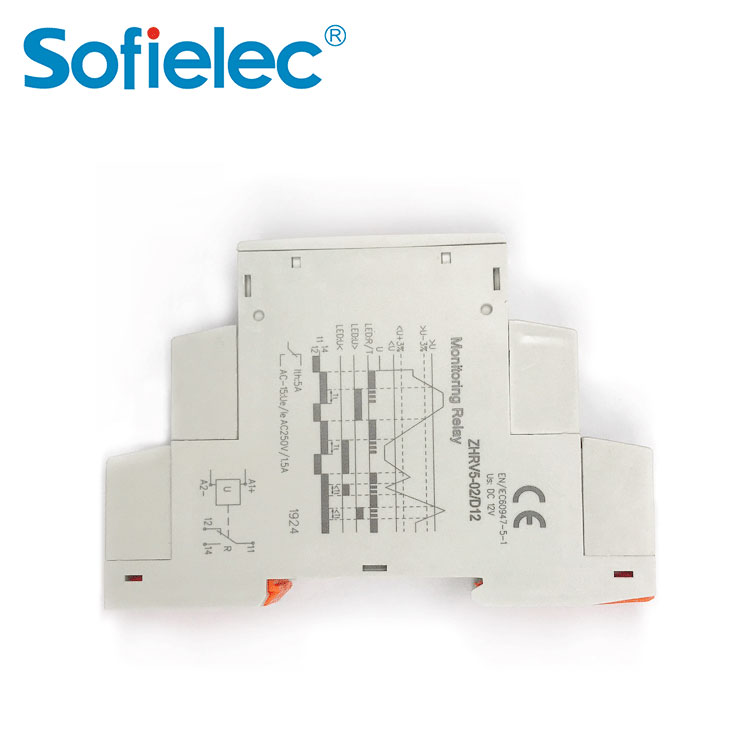 Microprocesadores integrados, medición de verdadero valor eficaz (RMS), precisión de medición de voltaje ≤1 %. Frecuencia de medición: 45 Hz a 65 Hz. Ajuste mediante perilla. Indicador LED que muestra el estado de funcionamiento. Función de bloqueo en caso de fallo. Montaje en riel DIN.